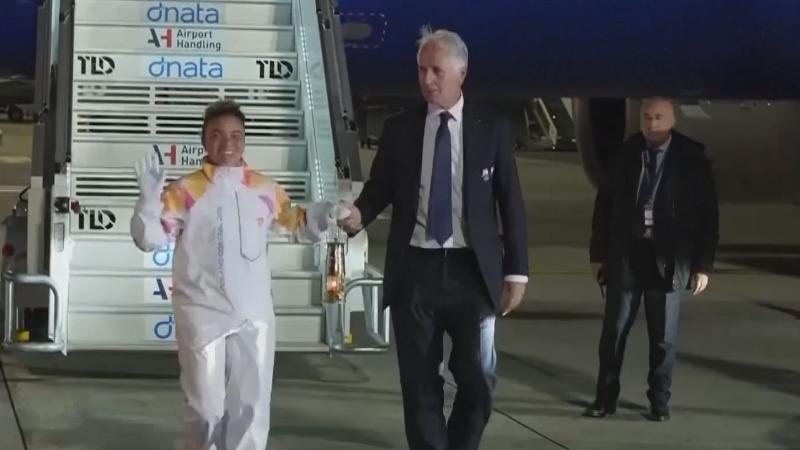 米兰-科尔蒂纳冬奥会火种抵达意大利罗马